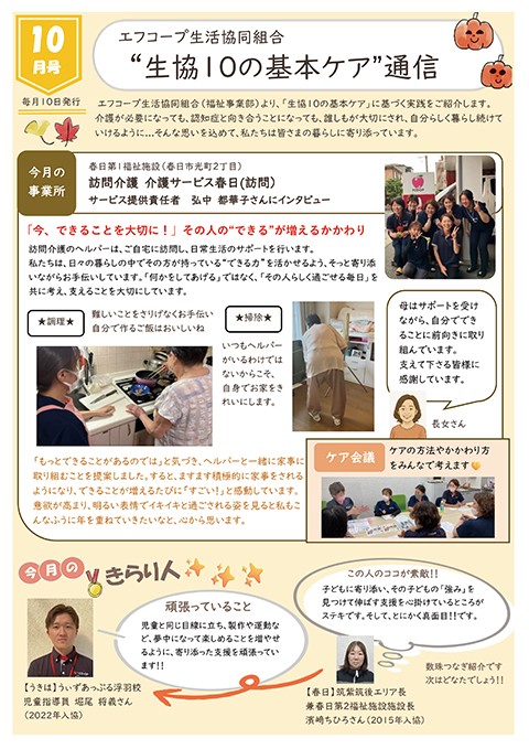 生協福祉が推進する「生協10の基本ケア」を通じて、利用者の尊厳や自立を大切にした現場の創意工夫や、介護などの豆知識をご紹介♪