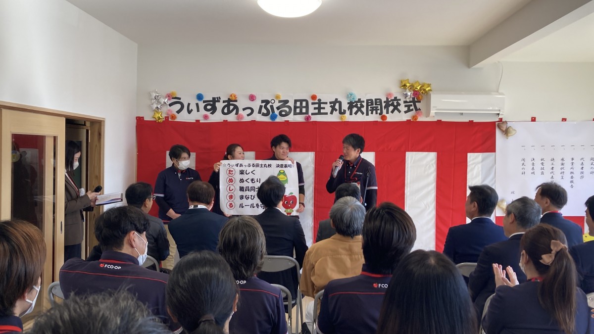 かねてより開校に向け準備を進めていました、エフコープで2校目となる放課後等デイサービスの「うぃずあっぷる」田主丸校がいよいよ来年1月5日(月)に開校することとなりました。 それに先立ち、12月15日(月)、これまでお世話になったみなさまをお招きして開校式を開催。 エフコープの堤新吾理事長からの挨拶ののち、事業所紹介・感謝状贈呈・スタッフ紹介と決意表明で、盛会に終えることができました。 その様子をご紹介します。 ご利用のお問い合わせ・ご見学・ご契約も続々。 来年から、お子さまを「放デイに」といわれるみなさま! ぜひ、こちらからお気軽にお知らせください。