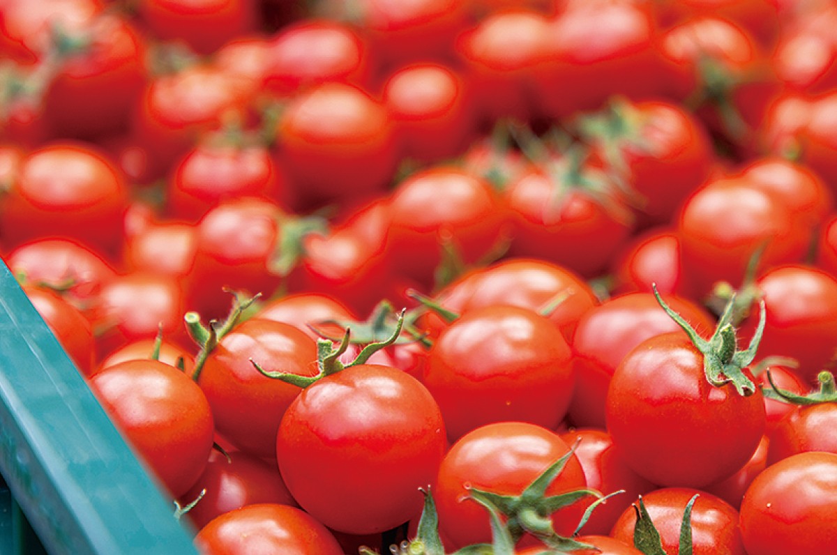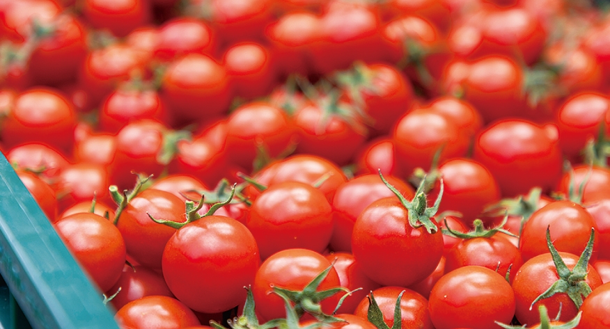 耳納連山を望む自然豊かなうきは市にあるエフコープの子会社「株式会社コープファーム」が栽培している『コープファームうきうきミニとまと』。この『コープファームうきうきミニとまと』の魅力は、なんといっても甘くておいしいこと!収穫してから数日で組合員さんの元にお届けできるので、樹上でしっかり赤くなってから収穫し出荷しています。11月~6月の期間限定!この時期だけのジューシーなおいしさを、ぜひ味わってみてください。