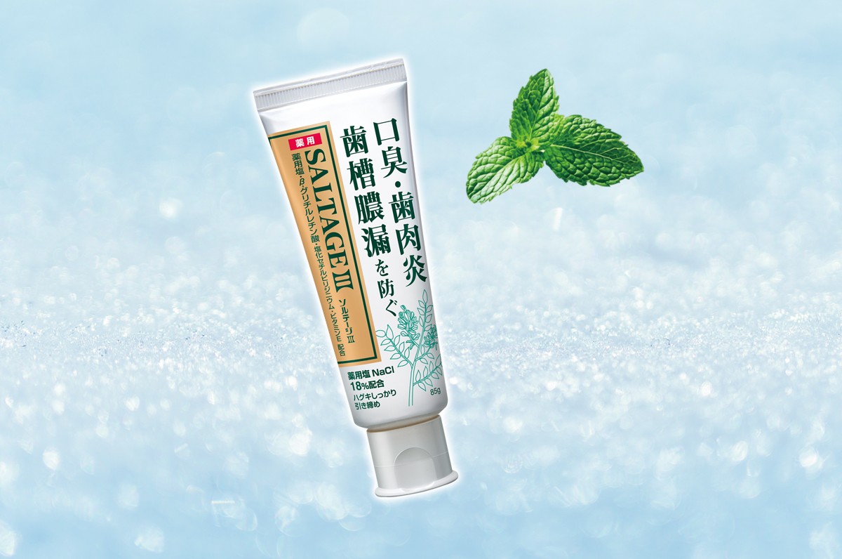 ソルテージの大きな特長のひとつが「ソルト」、薬用塩の配合量です。しょっぱすぎず、効果実感を最大限に感じられるギリギリの配合量である18%を配合しています。最初はしょっぱさに驚かれる方もいらっしゃいますが、使っていくにつれ、スッキリ感がクセになるという声が多数。生協で長年愛されてきた『薬用ハミガキ ソルテージⅢ』。まだ試したことのない方も、この機会にぜひ一度使ってみてはいかがでしょうか。