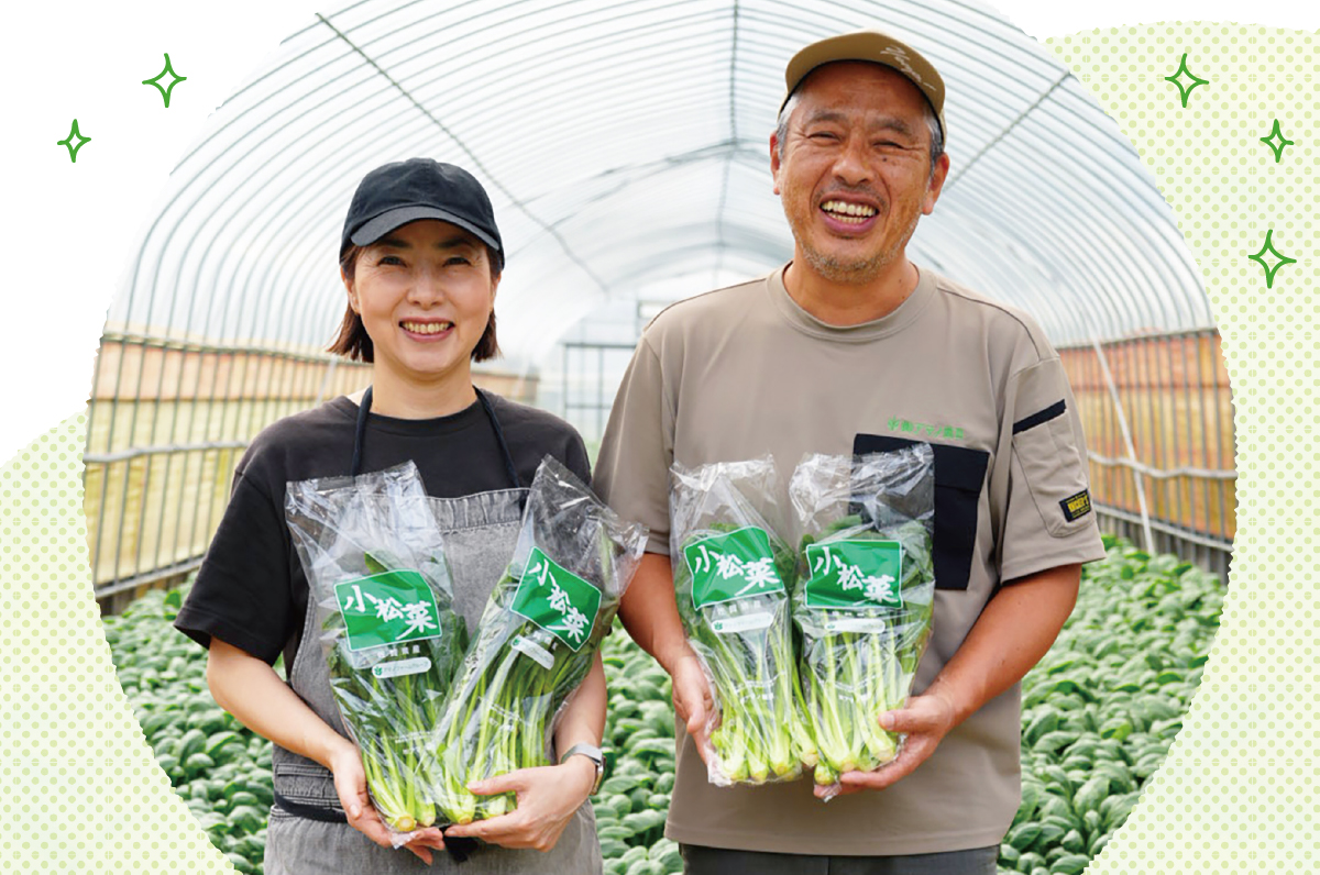 今からが旬の産直小松菜。アクが少ないので下ゆでなしで使える手軽さも、人気の理由です。味にもクセがないので、どんな食材とも相性が良く、和食・洋食・中華と幅広い料理に使えます。生でも煮ても炒めてもOKという、使い勝手の良さも魅力です。