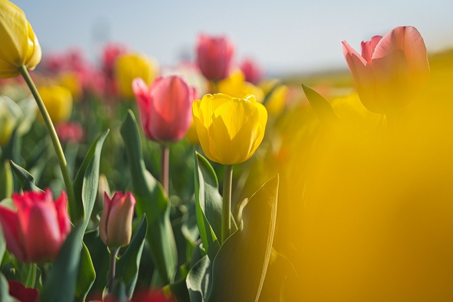 今回は一部の写真を紹介します。1枚目は直方リバーサイドパークで開催されていたチューリップフェアでの写真です。河川敷にカラフルなチューリップが咲いていてとてもきれいでした。