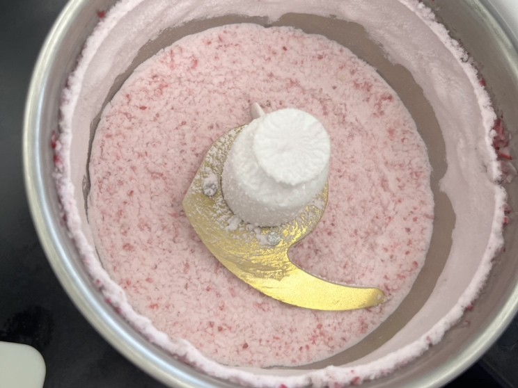 ②細かくしたドライアイスと一緒にミキサーに入れる。