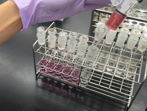 食品中に含まれる二酸化硫黄の濃度が高いほど、③で濃い紫色となり、吸光度も高くなります。