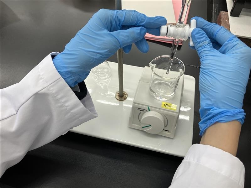 食品添加物検査担当新たな検査を習得中