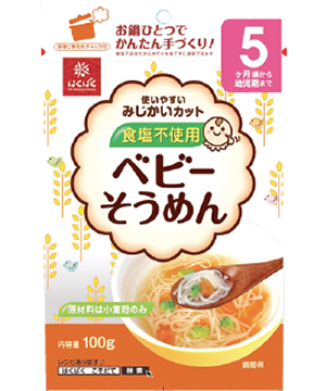- ベビーそうめんは粗くきざみ、沸騰したお湯でやわらかくゆでる。