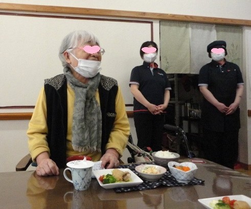 みんなで「おめでとう!」の拍手の中、利用者様からりんご庵へ感謝のお言葉を…😂