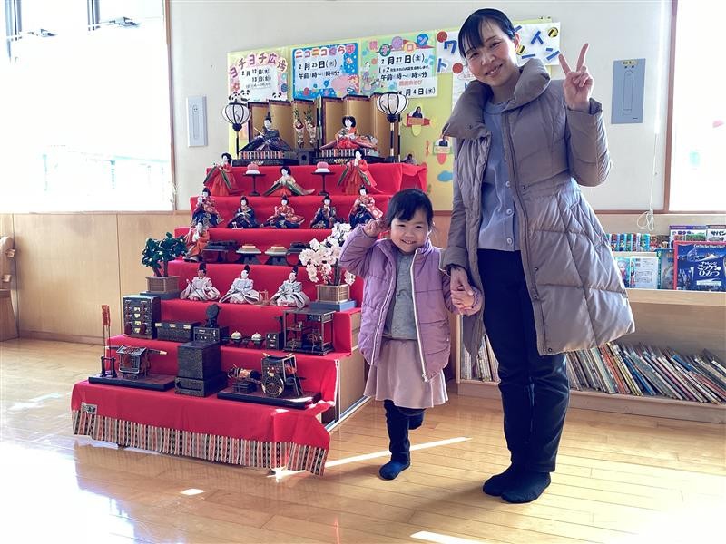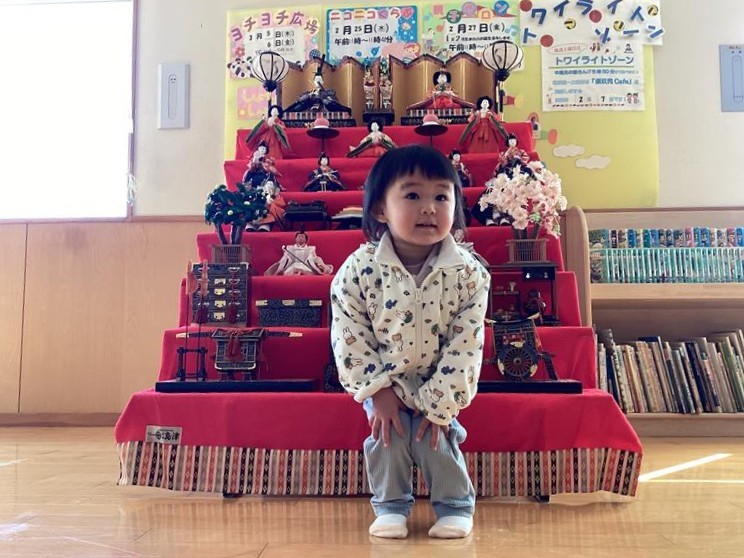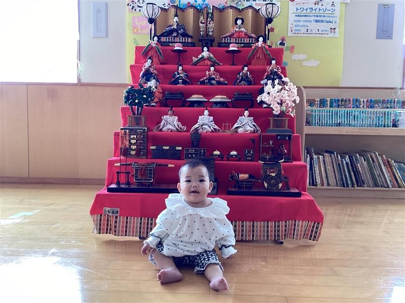 旧暦の3月3日にあたる、4月3日まで飾っていますので、遊びに来た時には、一緒に写真を撮って、季節の行事を感じてみてくださいね。