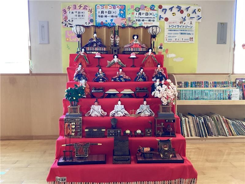 須玖児童センターでは、こどもたちの成長と幸せを願って、今年も大きな「雛飾り」を飾りました。