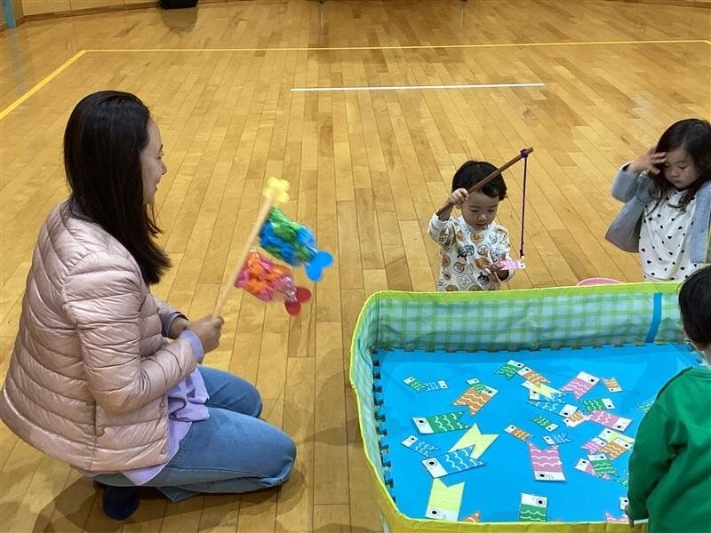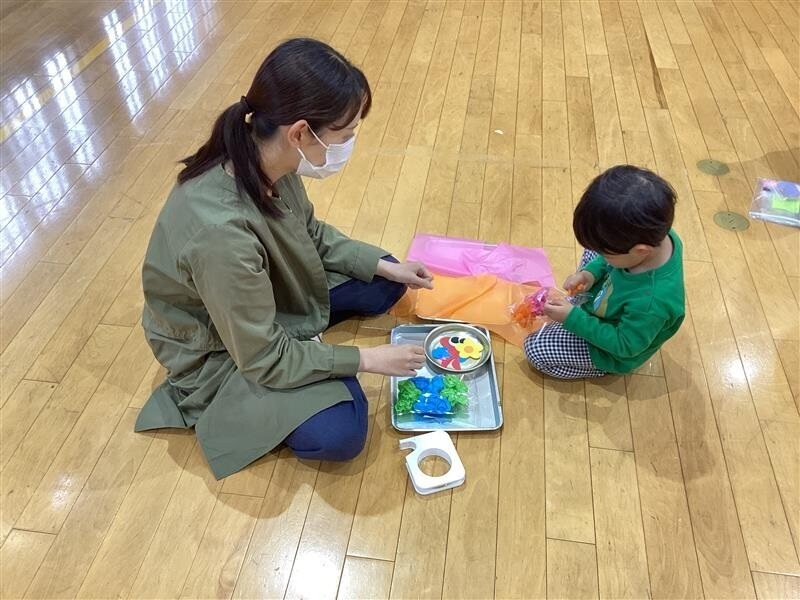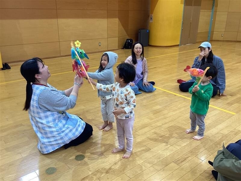 今回はもうすぐ5月ということで、こいのぼり製作とこいのぼり釣りを楽しみました。始めにこいのぼりを上げる由来について紙芝居を使いお話しました。その後は花紙を使ってこいのぼりの製作!とってもかわいいこいのぼりが完成していましたよ♪こいのぼり釣りでは、何匹釣ることができるかな~と真剣でした★