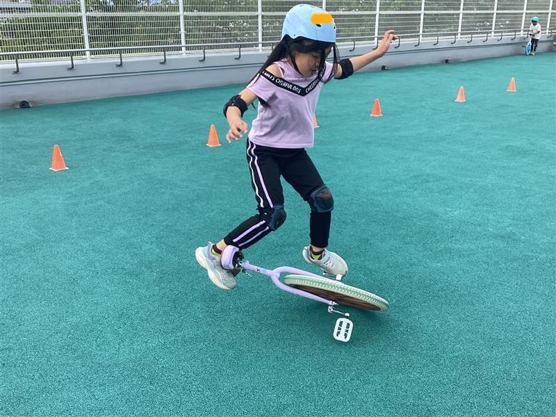 初心者から経験者の4名の小学生が参加し、時間いっぱい練習をしていました。始めは乗ることも難しかった児童もバランスを保って前に進めるようになりました。経験者はより難しい技に挑戦し、みんな熱中して練習をしていました!お天気も良く、時間の限り集中し、上達の速さに驚きました!