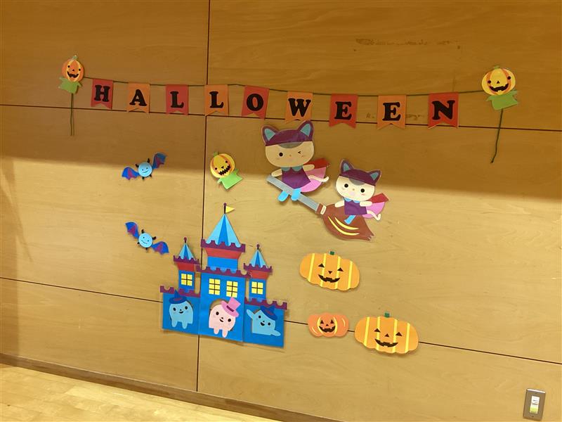 今回はスタッフと一緒に、壁面に飾りつけをしていただきました。