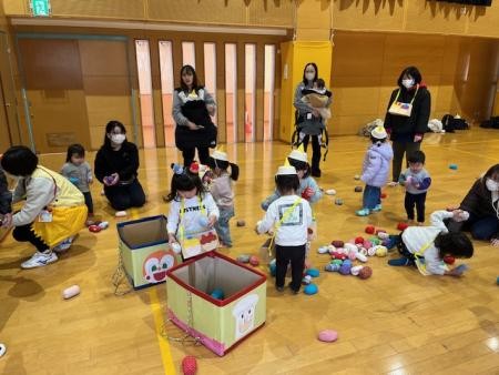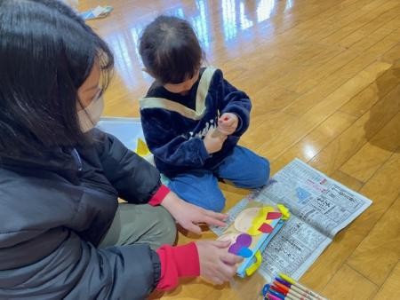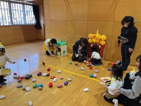 ペープサートで節分の説明を聞いた後、悪い鬼を退治しよう!!