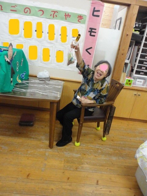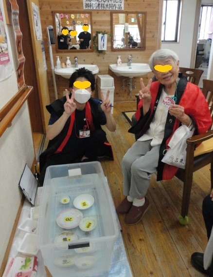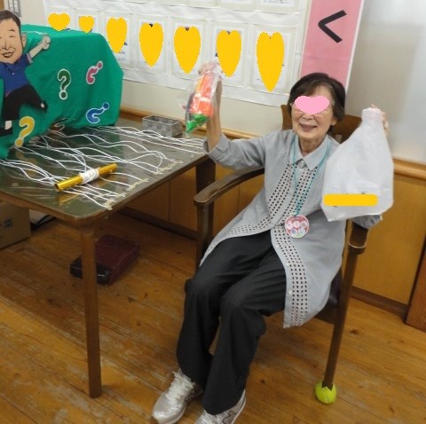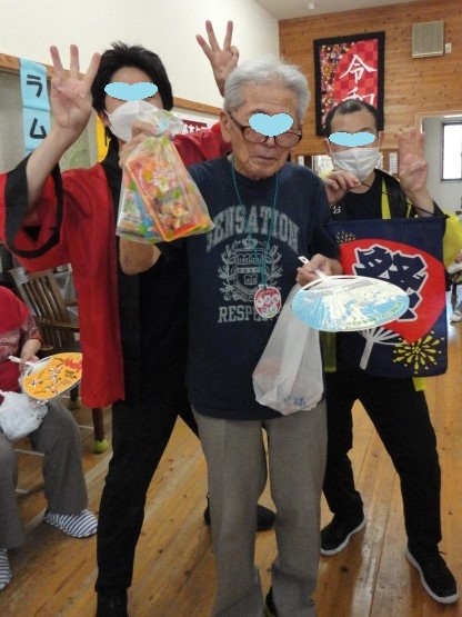 最後にゲームの点数が高かった方への豪華?景品持って記念写真