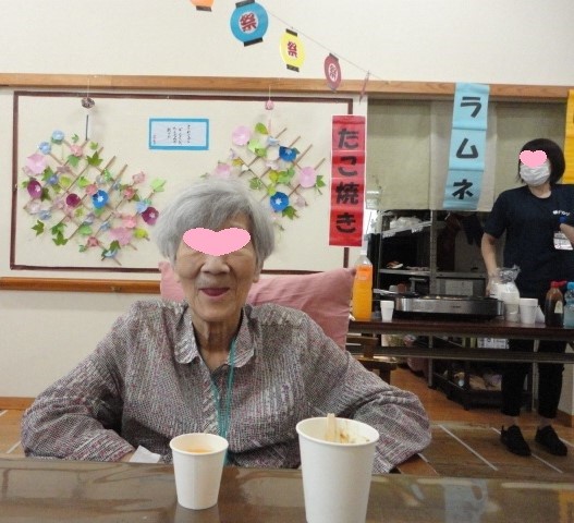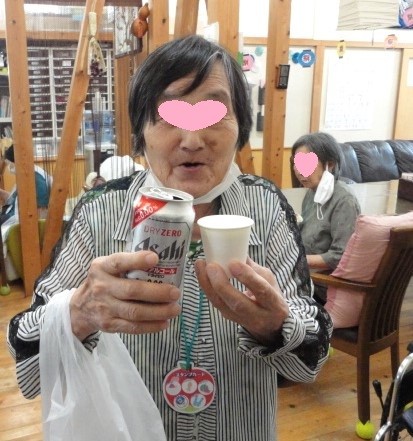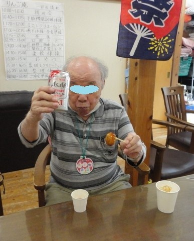 たこ焼きにラムネやビール(もちろんノンアルです)にニッコリ満足気😊