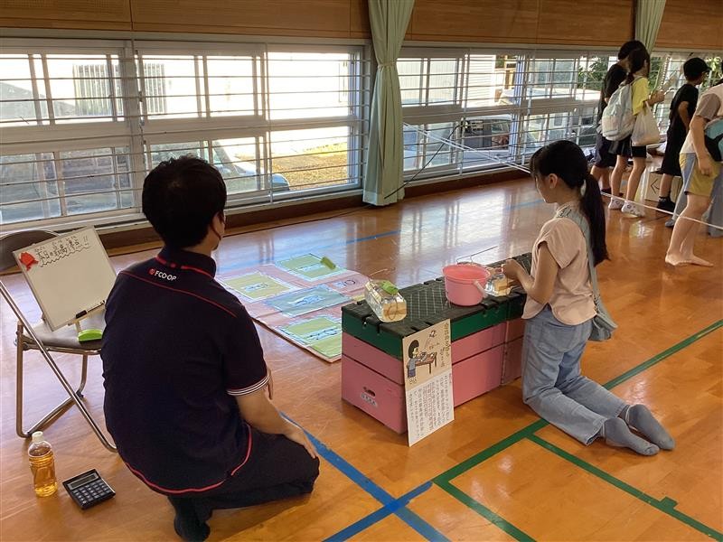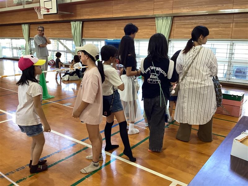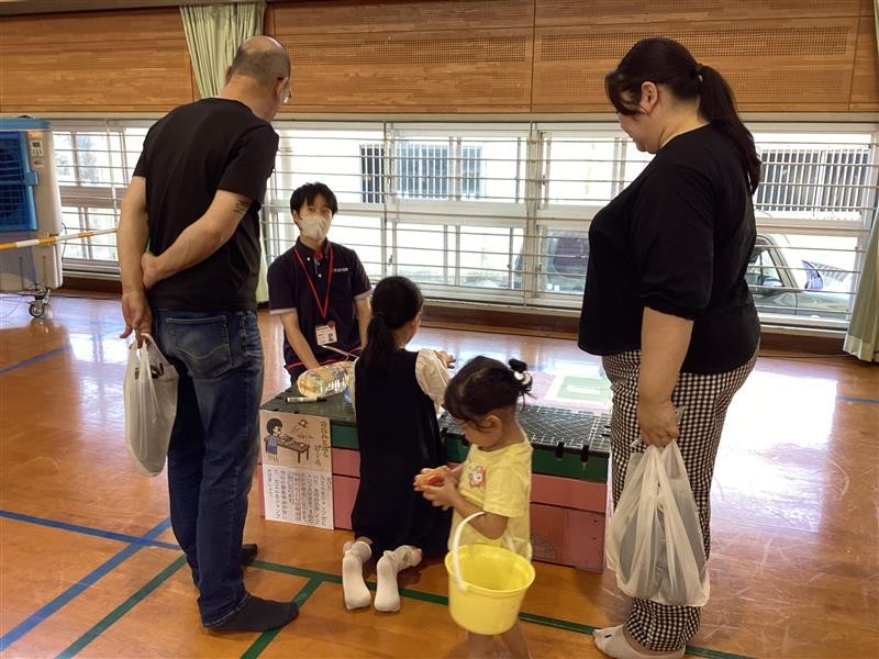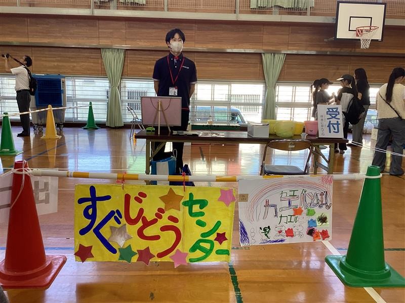 令和7年10月11日(土)須玖小学校で開催された「すぐっこまつり」でカエル跳ばしゲームを出店しました。体育館内は色々な催しでとても盛り上がっていました。