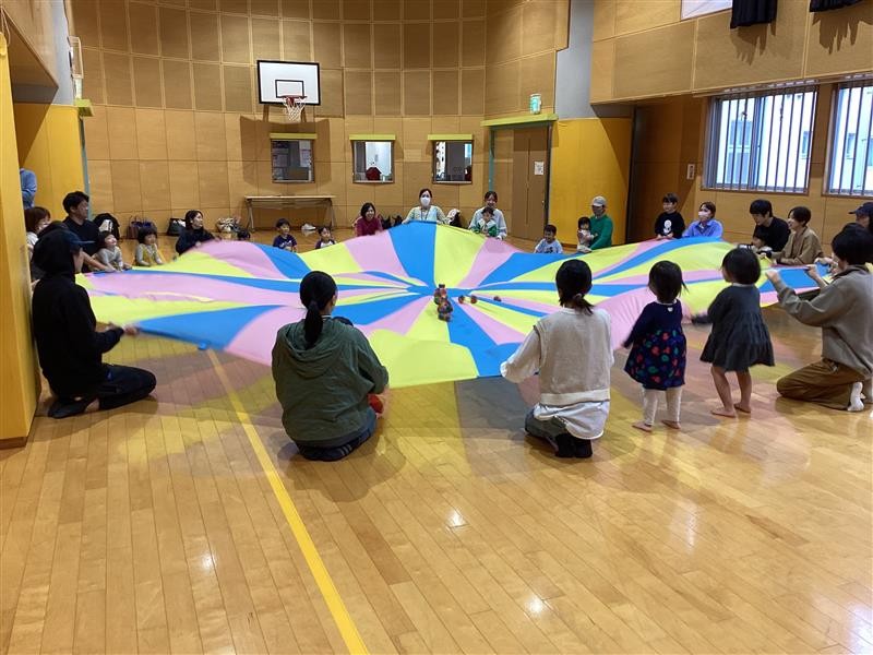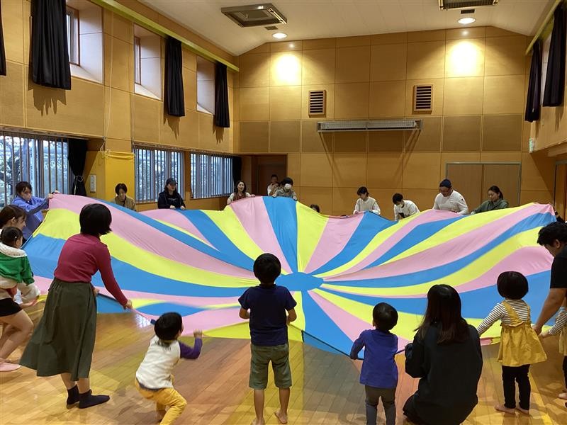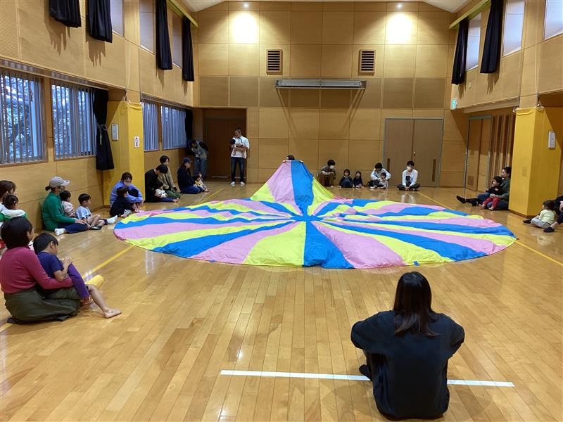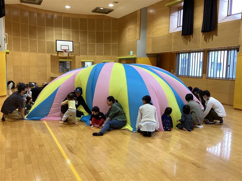 令和7年11月9日(日)親子であそぼう~パラバルーン~を行いました。16組42名の幼児親子さんが参加してくれましたよ!