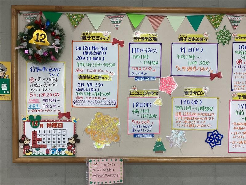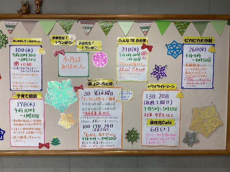 12月といえばこどもたちの楽しみにしているクリスマスイベントがあります。須玖児童センターでもクリスマスに関する行事を予定していますので、せひ参加してくださいね。エフりん(エフコープキャラクター)もやってきますよ!!