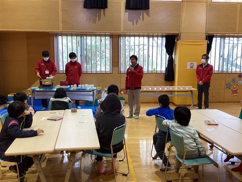 最後にエフコープの公式キャラクター「エフりん」の登場!!こども達はとても興奮していましたよ。エフりんからクリスマスプレゼントをもらってみんな嬉しそうでした。