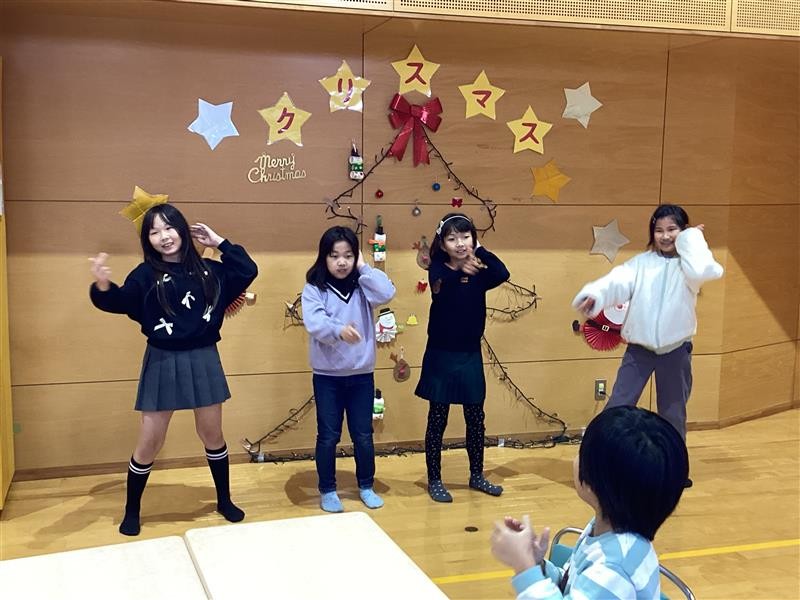 次に、おはなしクラブの発表があり、ダンスを2曲披露しました!!おはなしクラブは練習の成果を発揮し、みんなも手拍子をして一緒に楽しみました。ゲームでは新聞紙じゃんけんが大盛り上がり!勝った人から、自分で作ったシール帳にシールを貼って、「かわいい」と言って喜んでいました。