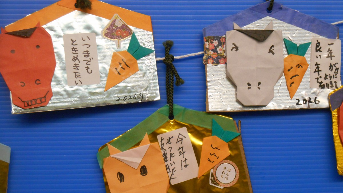 馬の表情もひとりひとり違う、味のある絵馬ができあがりました。