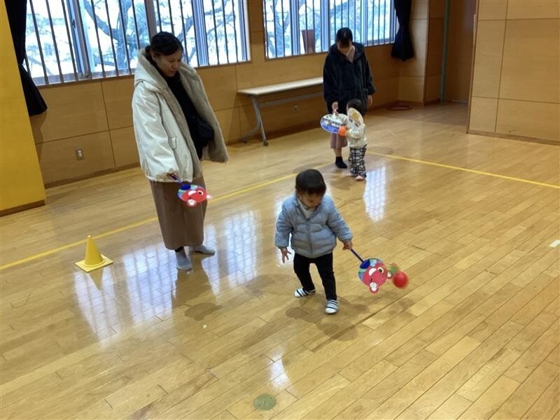 自由あそびでは、親子やお友達と一緒に絵合わせやこままわし、うちわと風船の羽根つきなどお正月に関するあそびを楽しみましたよ♪