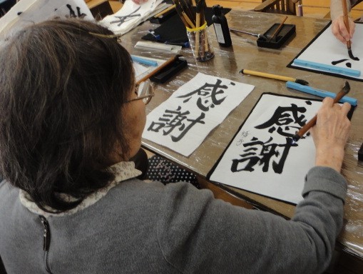 「笑顔」、「感謝」、「幸福」などそれぞれの想いがこもった素敵な文字が並びました。