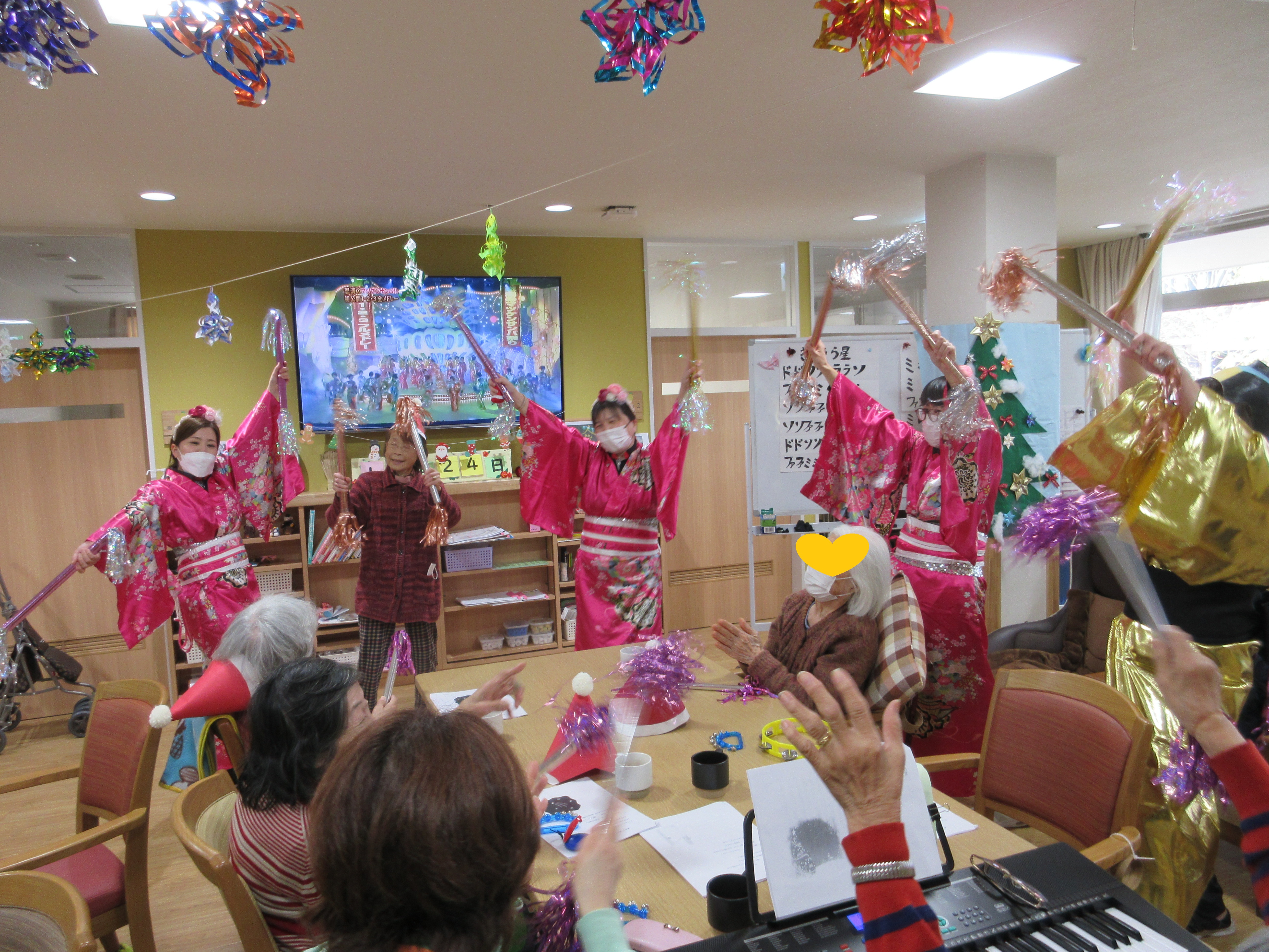 12月25日にかがやき大野城のクリスマス会を開催しました~Iクリスマス会にはサンタ帽やトナカイの角のコスチュームを付けて、雰囲気を盛り上げましたよ。
