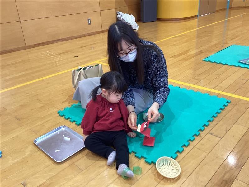 ふれあい遊びをして体が温まったあとに製作開始!!