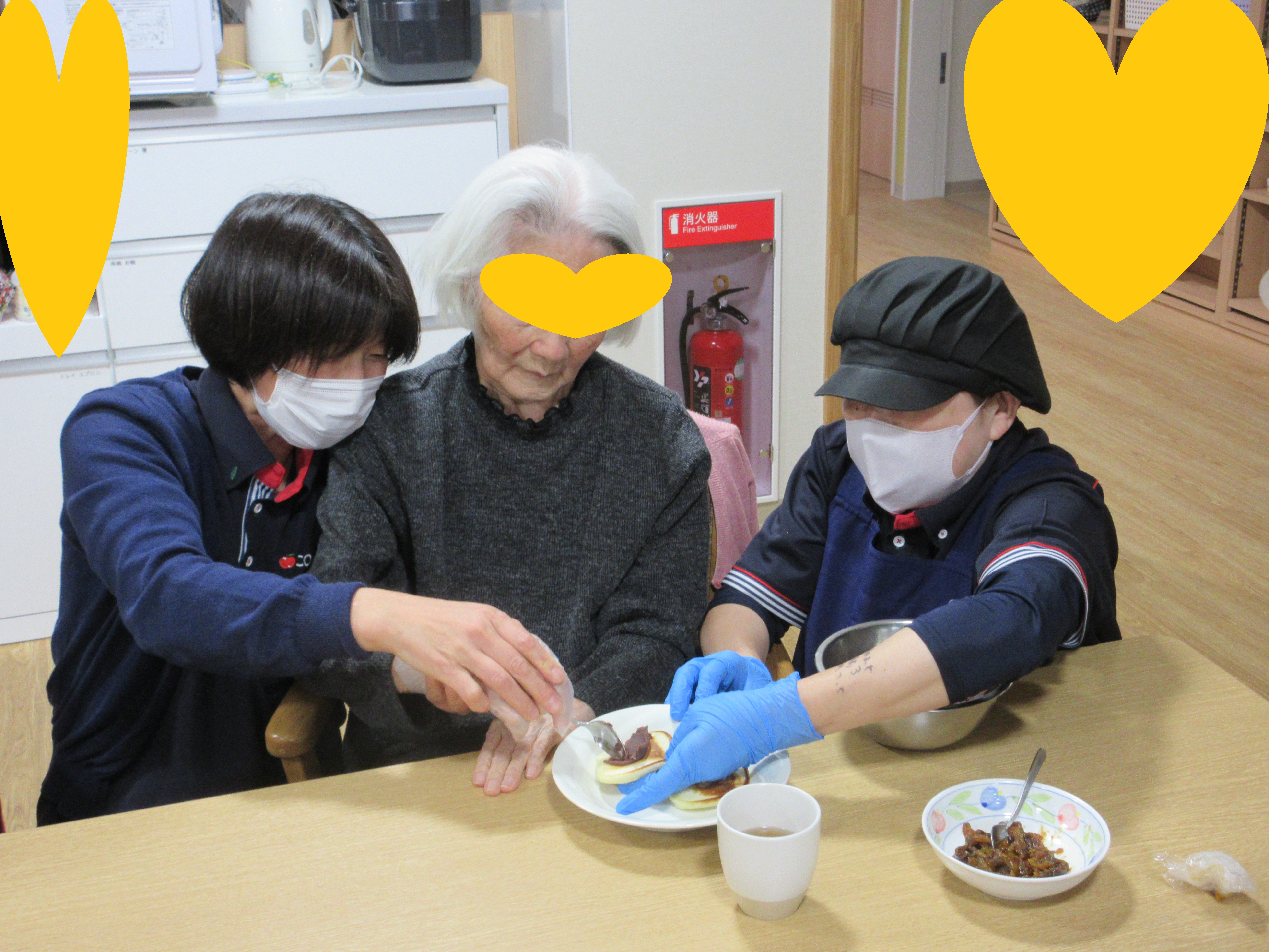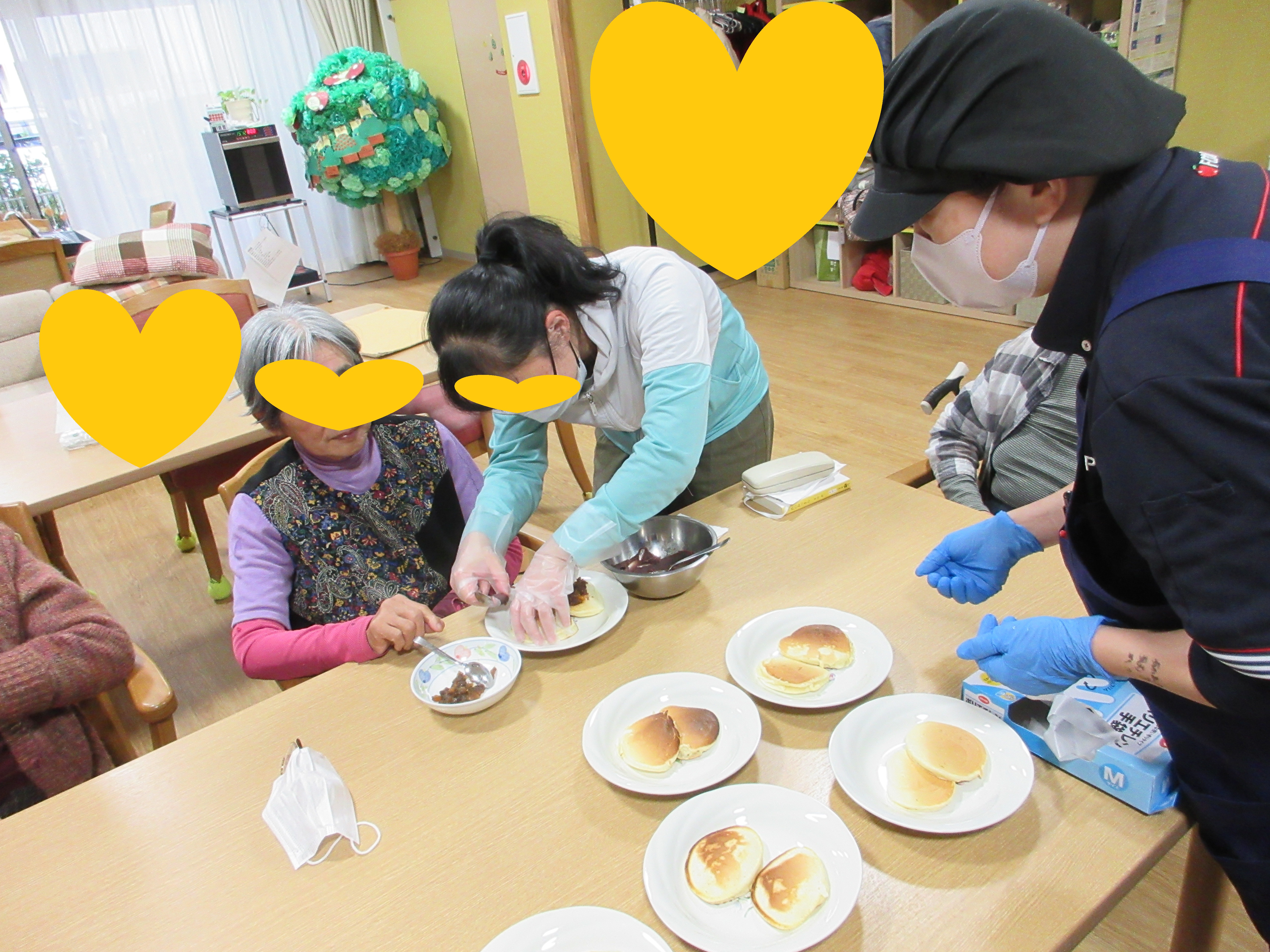 また別の日には、厨房の方と一緒にどら焼きを作りました🎵