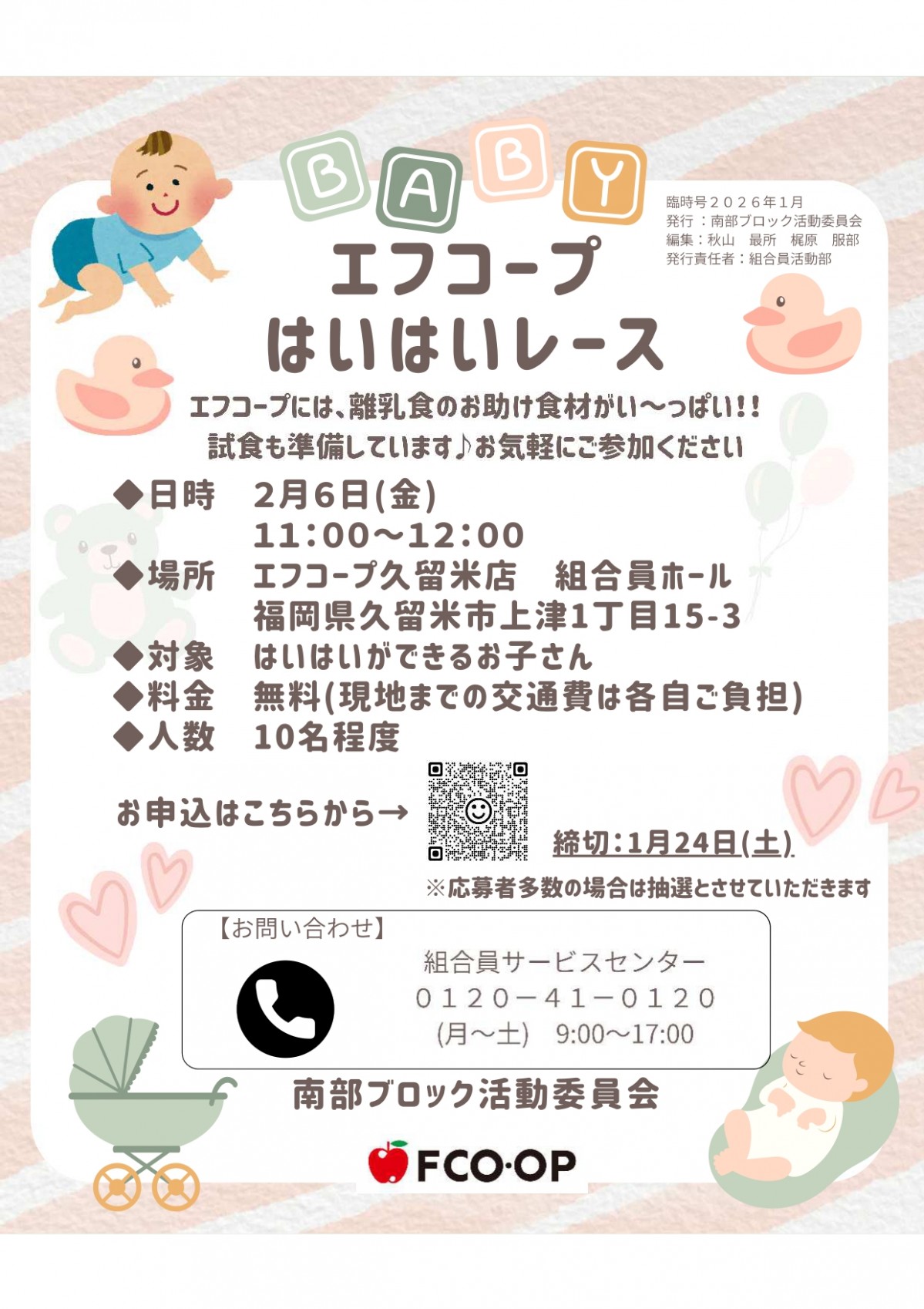 - エフコープ久留米店で「はいはいレース」を開催します!