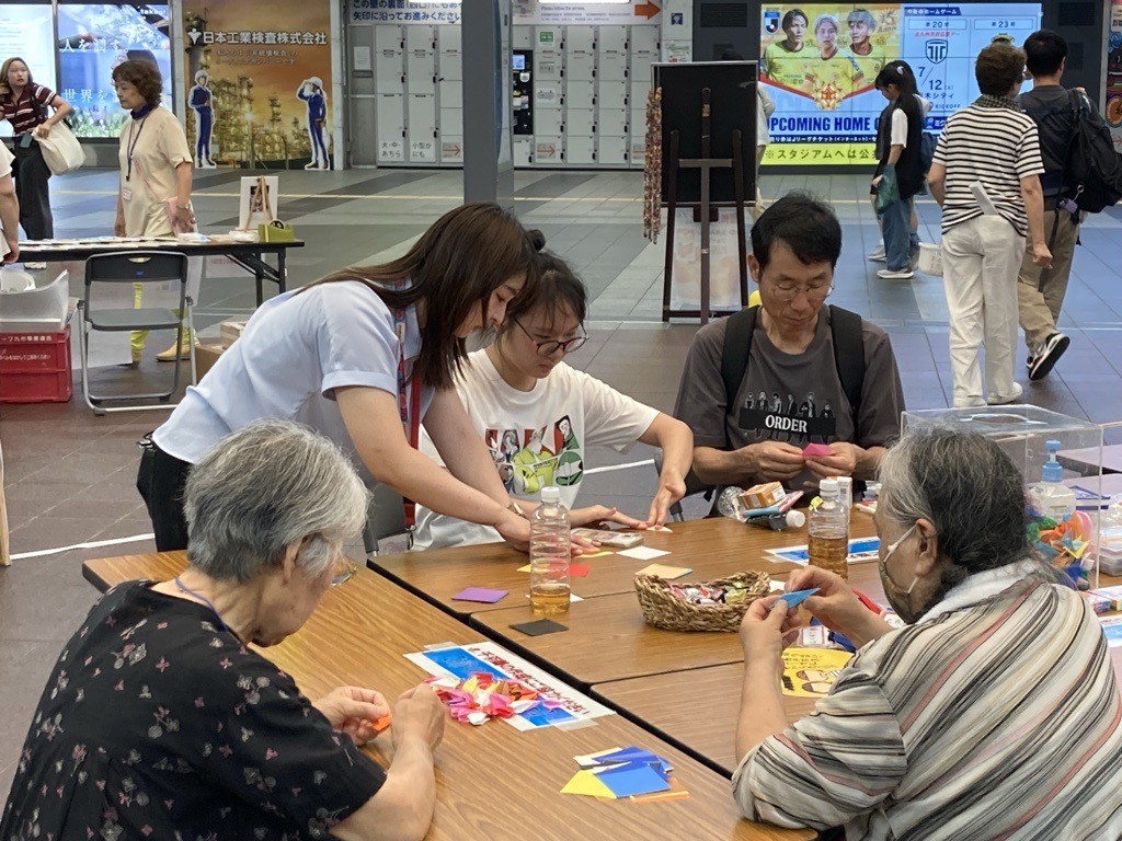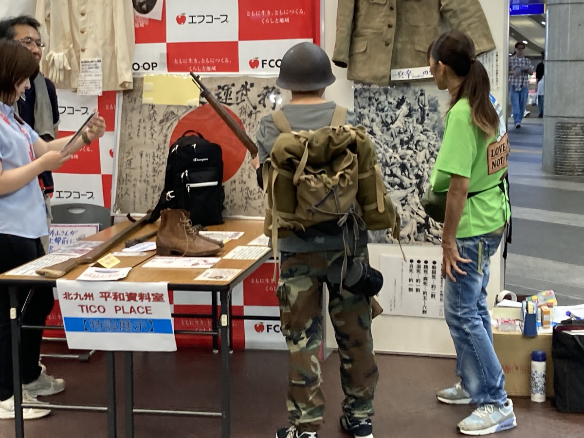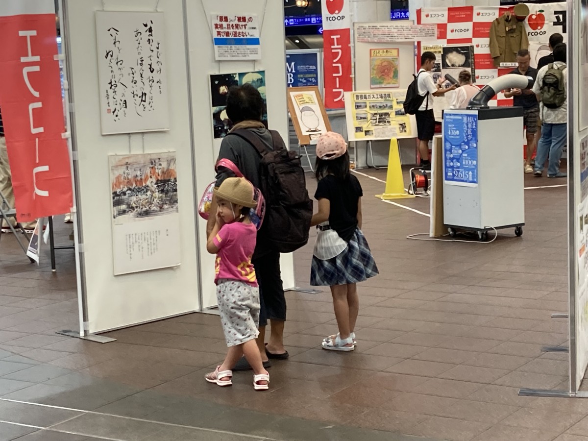 8月2日、JR小倉駅JAM広場にて「エフコープ平和パネル展 ~平和な世界を未来へ、戦後・被爆80年、二度と戦争を繰り返さない、ずっと戦後であり続けるために~」を開催しました。この平和展は、戦争・原爆の悲惨さを伝え、平和と命の尊さを考えるきっかけになってほしいとの目的から例年開催しているものです。被爆者自らが監修した写真と解説「原爆と人間」や1945年8月8日に八幡を焼け野原にした「八幡大空襲」の様子を記録したパネル、被爆漫画家の西山進さんの漫画などを展示しました。また、今年は被爆・戦後80年ということで、北九州平和資料室「TICO PLACE」の特設展示も行いました。小倉駅は人通りも多く、改札口前のJAM広場ということもあり、会場にはたくさんの方が訪れ、パネルを真剣に見入る人や折り鶴を折ってくれたり、被爆体験証言集『つたえてください あしたへ……』を持ち帰っていく人など、多くの方に立ち寄っていただきました。訪れた人たちが少しでも戦争や原爆の実相を知り、平和について、命の大切さについて考えるきっかけになってくれたらと思います。