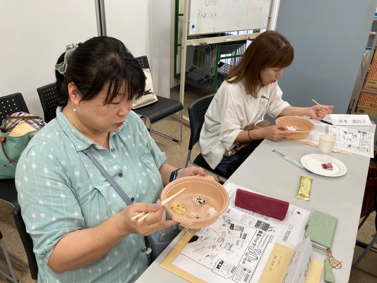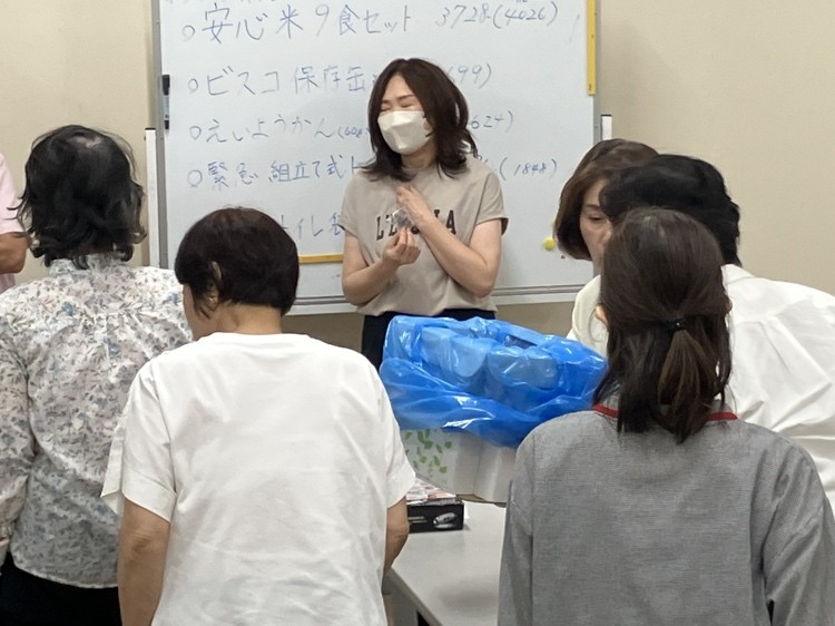 また当日は、イベントとして学習係担当で「防災用品」の学習会を開催しました。「カタログで見る防災グッズが、実際に見ることができたのはよかったです」「防災について改めて考えるきっかけになりました。具体的に、何を準備したらいいのか商品を見ることや試食することができて、とてもよかったです」「防災の学習会、勉強になりました。カタログで見ても、実際にこんなに入っているんだと実感できました。安心米を食べて、びっくり!おいしいし、普通に炊いたご飯と変わらないですね。区域委員会は、年間たくさん活動されていますね」などとても好評な学習会でした。