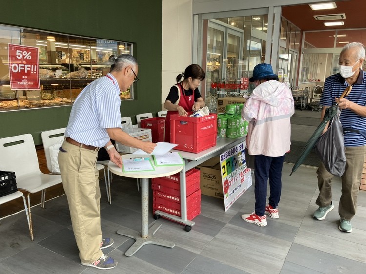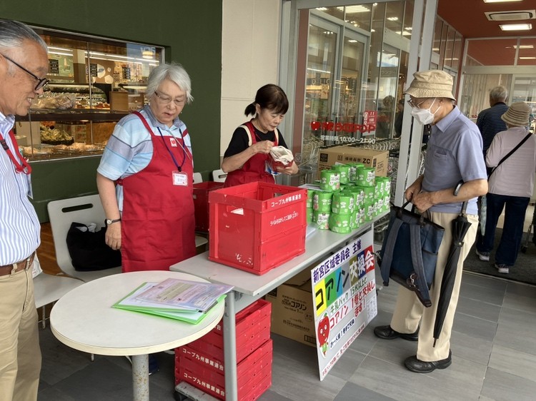 10月3日(金) 新宮区域テーマクラブ「スクスク(SKSK)」と新宮区域委員会による「新宮店盛上げ隊(新盛り)」が行われ、生協の商品を使った試食会を実施しました。