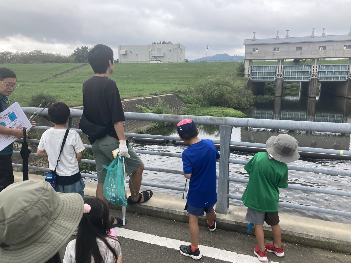 今年5月にも同じ企画を開催しましたが、筑後川の増水のためカヌー体験ができませんでした。今回はリベンジとしての開催でしたが、またもや天候不良で参加者の安全を考慮し、カヌー体験は中止となり、川のおそうじ活動をしながら筑後川周辺の防災設備を見学し、館内では田んぼダムの学習会を行いました。