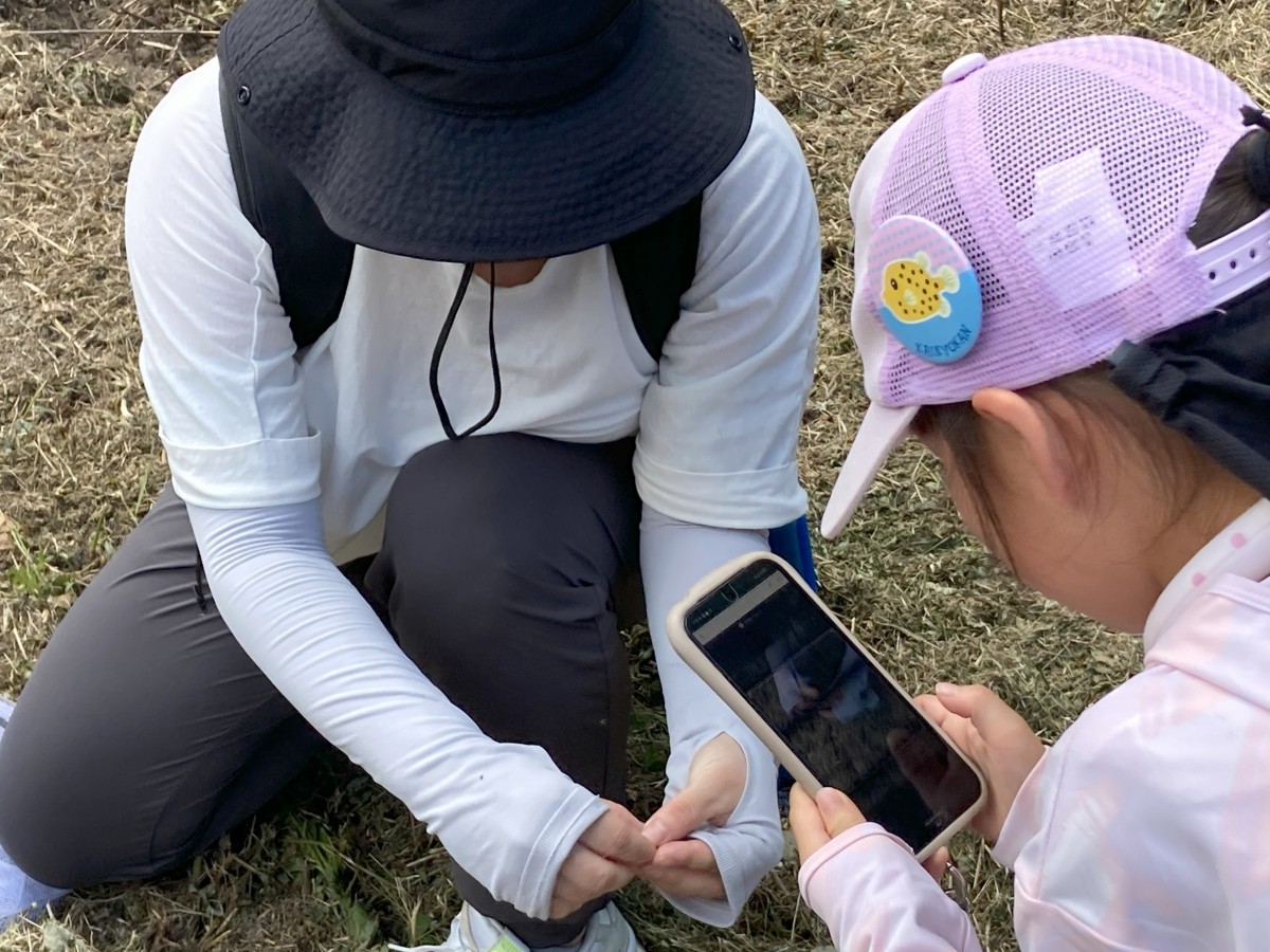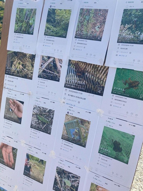 後半は、会議室を出てコープの森へ移動し、いきものコレクションアプリ「Biome(バイオーム)」を使用して実際にいきもの調査を行いました。Biomeを通じて撮影したいきものは、その場で印刷を行い参加者全員で「コープの森いきものマップ」を作成しました。「コープの森いきものマップ」を活用して講師からコープの森の周辺の環境状態について考察が行われました。実際に参加者が捕まえたいきものであることもあり、興味津々で話を聞かれていました。