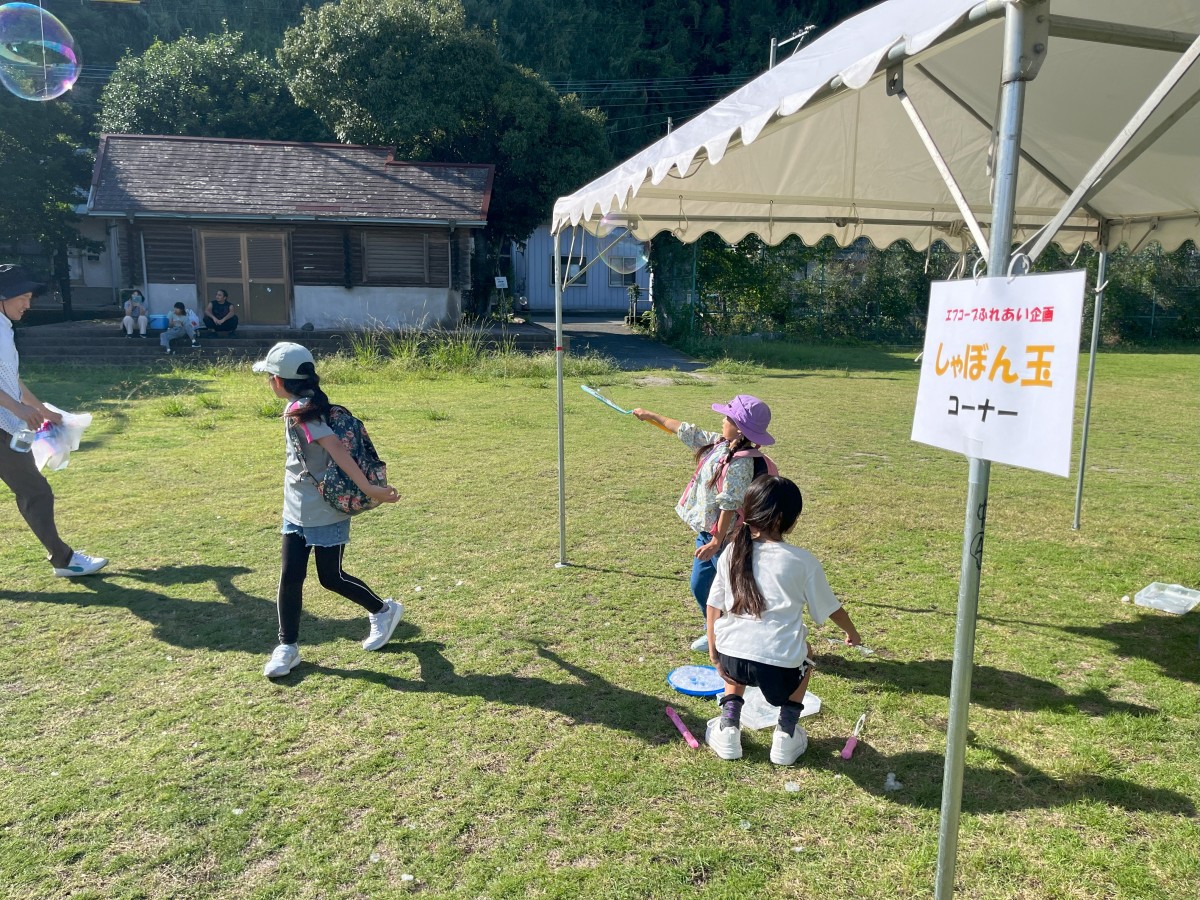 参加者は組合員とそのご家族93名、スタッフ26名、宗像市職員3名の計122名となりました。釣り堀以外にも、ふれあい芝生広場では、「紙コプター」「シャボン玉」など、笑顔で楽しむ子どもたちの姿が印象的でした。