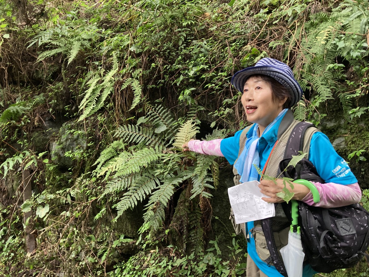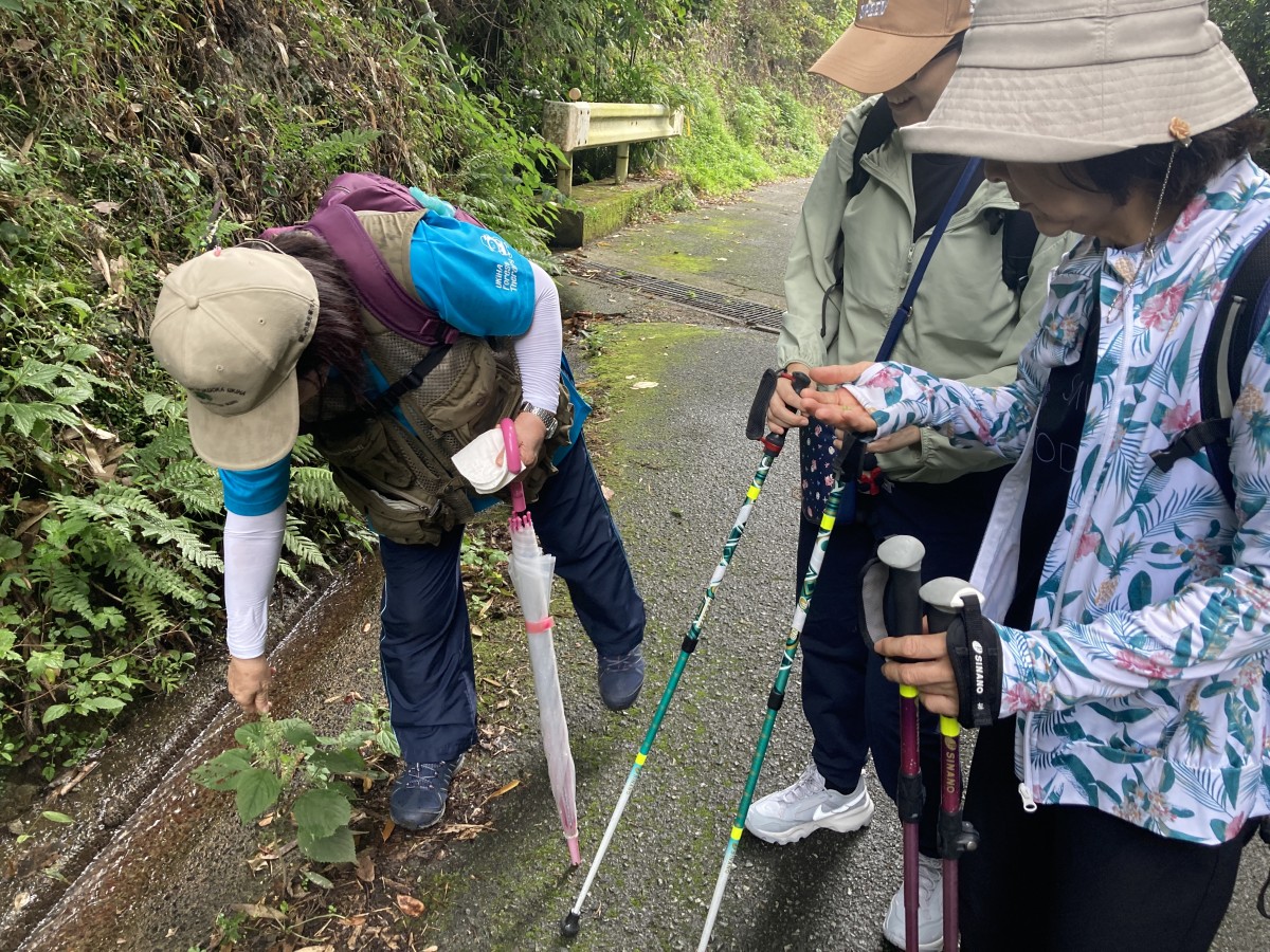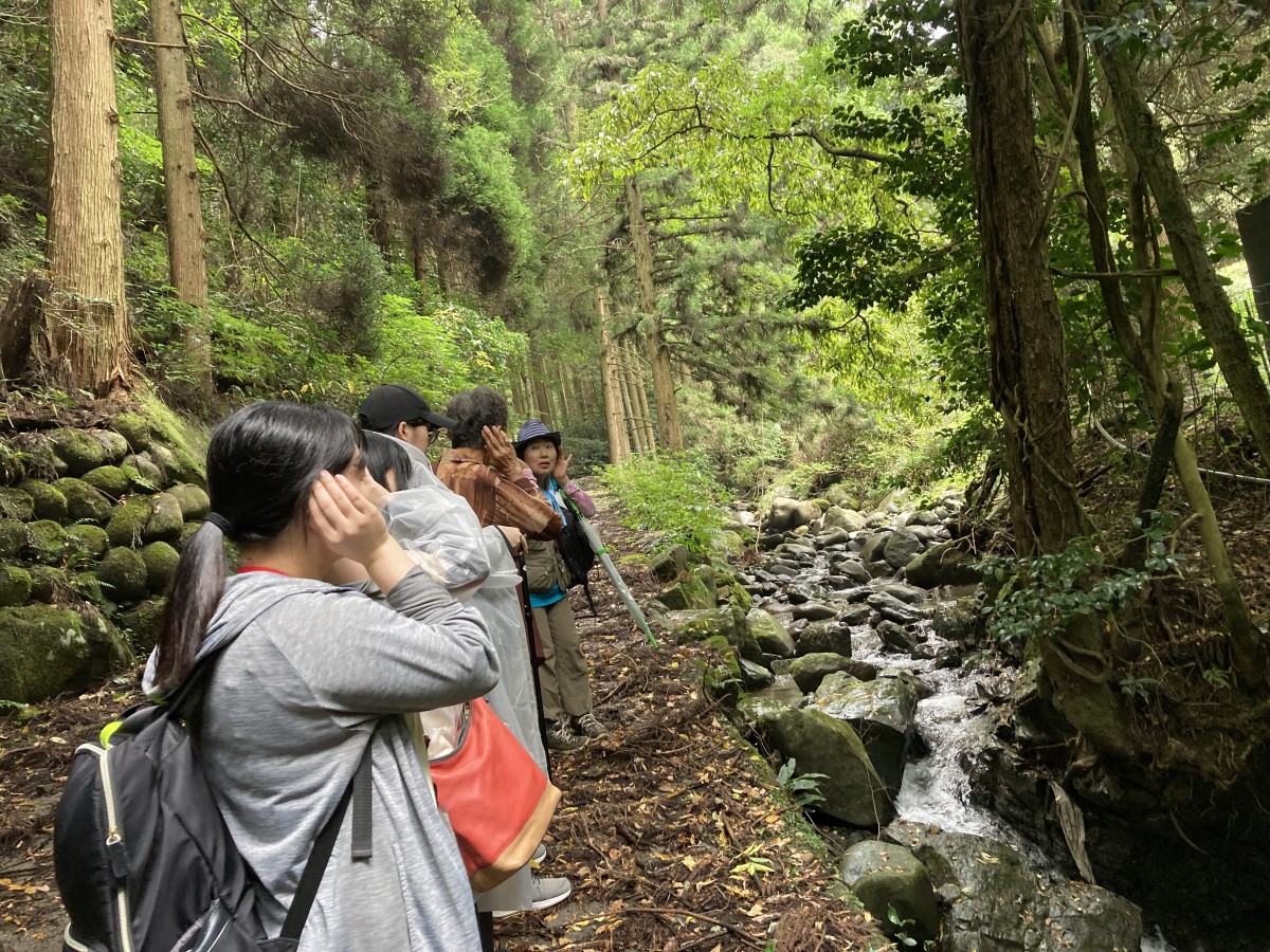 昨年好評の企画で「もう少し歩きたかった」との声を受け、今年度は2時間コース(お弁当付き)で行いました。両日とも雨天となりましたが、雨に濡れた木々や草花は色濃く、晴れの時とは違う姿を見ることができました。癒しの旅先案内人と一緒にゆっくりと山道を歩きマイナスイオンをたっぷり浴びながら、動植物の説明を聞き、手触り・匂い・音などを五感で感じたり、ヤッホー広場で大きな声で叫んだり、慌ただしい日常から離れてのんびりした時間を満喫しました。うきは市の地元のおいしいお弁当をいただき心身ともにリフレッシュできた一日となりました。森林セラピーでの癒し効果は長い人で1カ月程度持続するとの研究結果も出ているそうです。非日常を過ごす時間はとても大切なことであると感じた1日となりました。今後も継続して開催を予定しています。