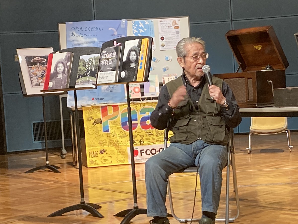 第2部は「被爆の証言から考える平和」をテーマに、広島で4歳の時に被爆した伊藤靖夫さんの被爆体験について、エフコープテーマクラブたんぽぽのわたげの朗読で聞き、伊藤さんご本人の被爆証言もお聞きしました。