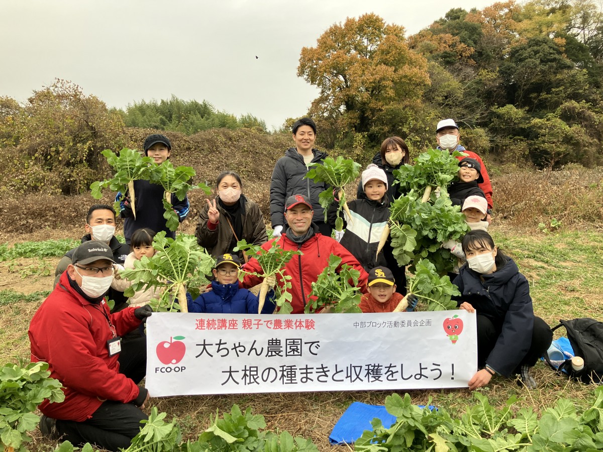 中部ブロック活動委員会企画 連続講座 親子で農業体験 大ちゃん農園で大根の種まきと収穫をしよう!