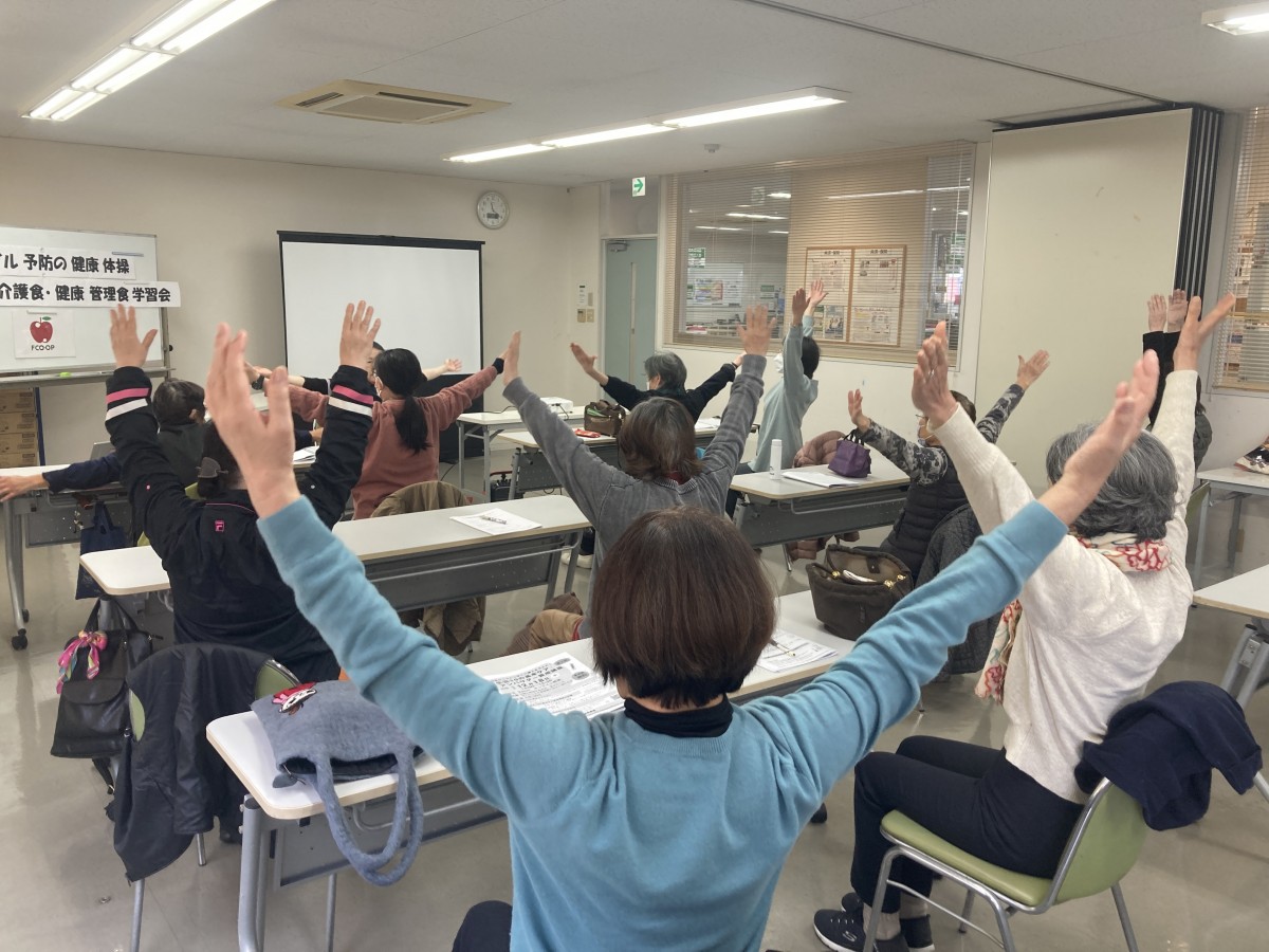 12月18日久留米支所にて「フレイル予防の健康体操 夕食宅配&健康管理食学習会」を開催しました。参加者は15名(スタッフ含む)でした。