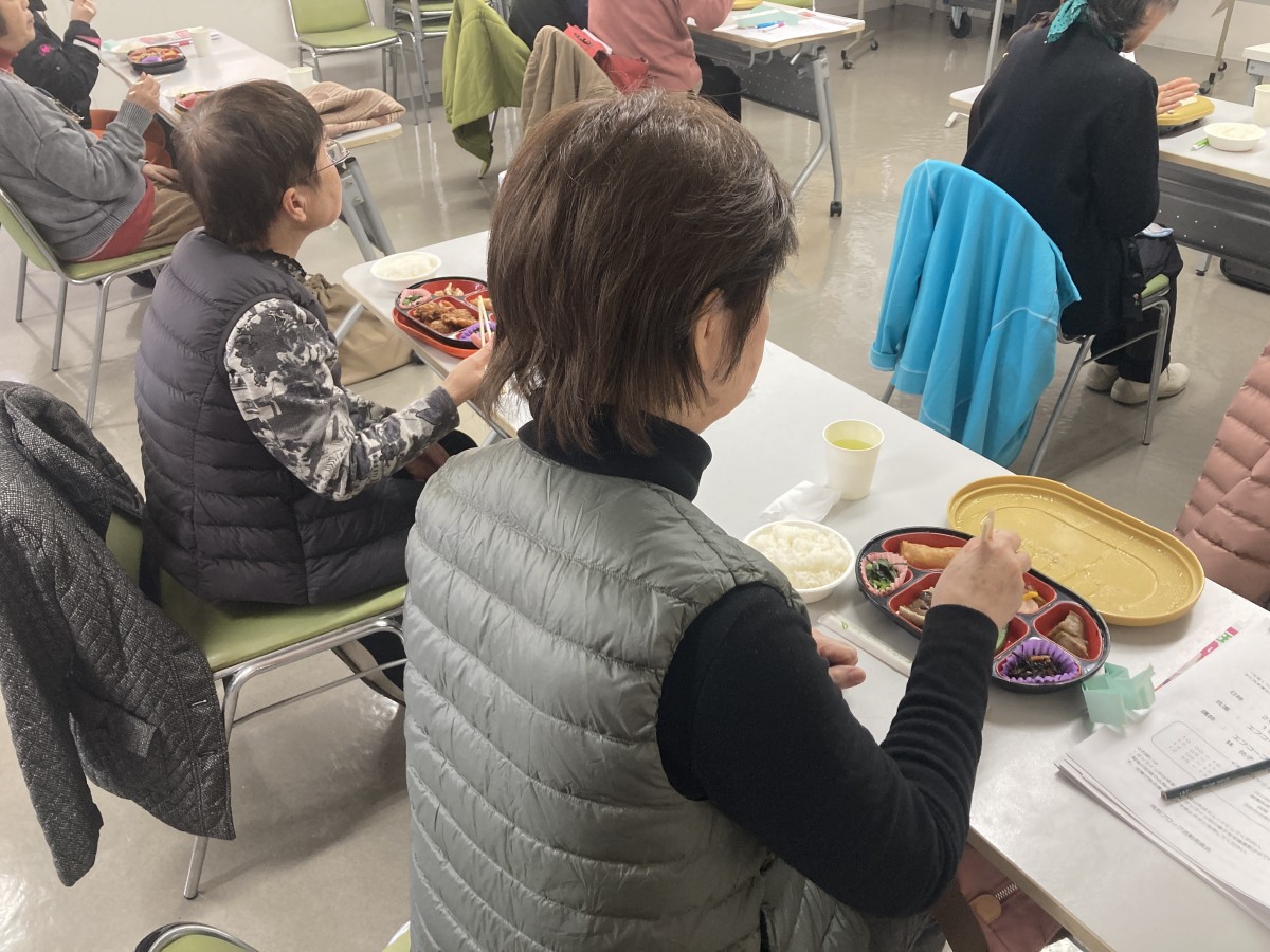 その後、エフコープの夕食宅配4種類(お弁当コース・おかずコース・こだわりおかずコース・ボリュームおかずコース)の中から1種類を選んで試食しながら、主菜は4週間以内、副菜は2週間以内に同じメニューは提供しない、深夜から製造を始め、調理後は急速冷蔵し低温に保ちながら利用者へお届けしている、などの説明を聞き「コープの夕食宅配」のおいしさや便利さ、こだわりについて知る機会となりました。