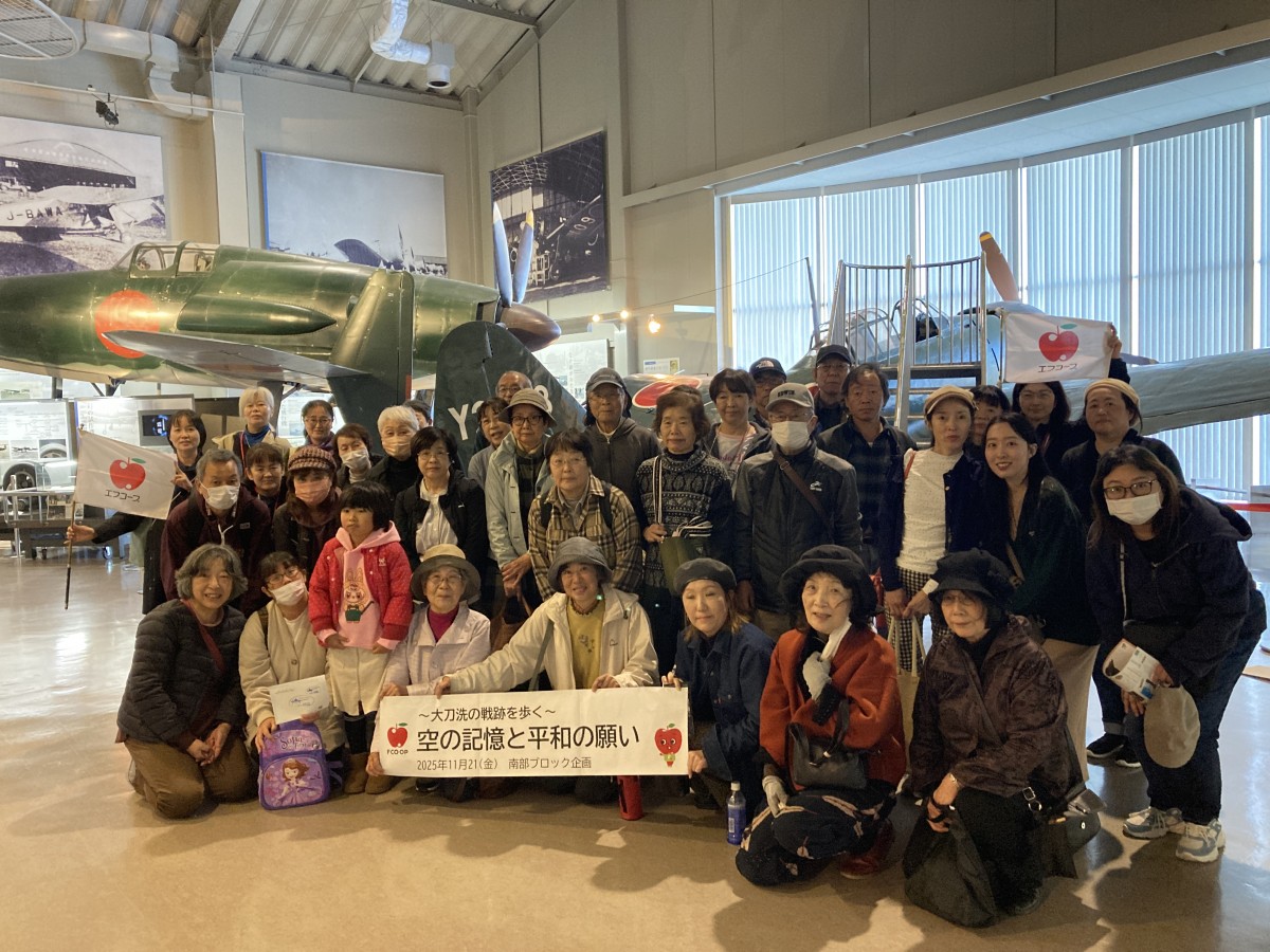 11月21日、被爆・戦後80年の節目に合わせ、私たち一人ひとりがあらためて平和の尊さや戦争の悲惨さを考える日にするため、南部ブロック企画「空の記憶と平和の願い ~大刀洗の戦跡を歩く~」を開催しました。