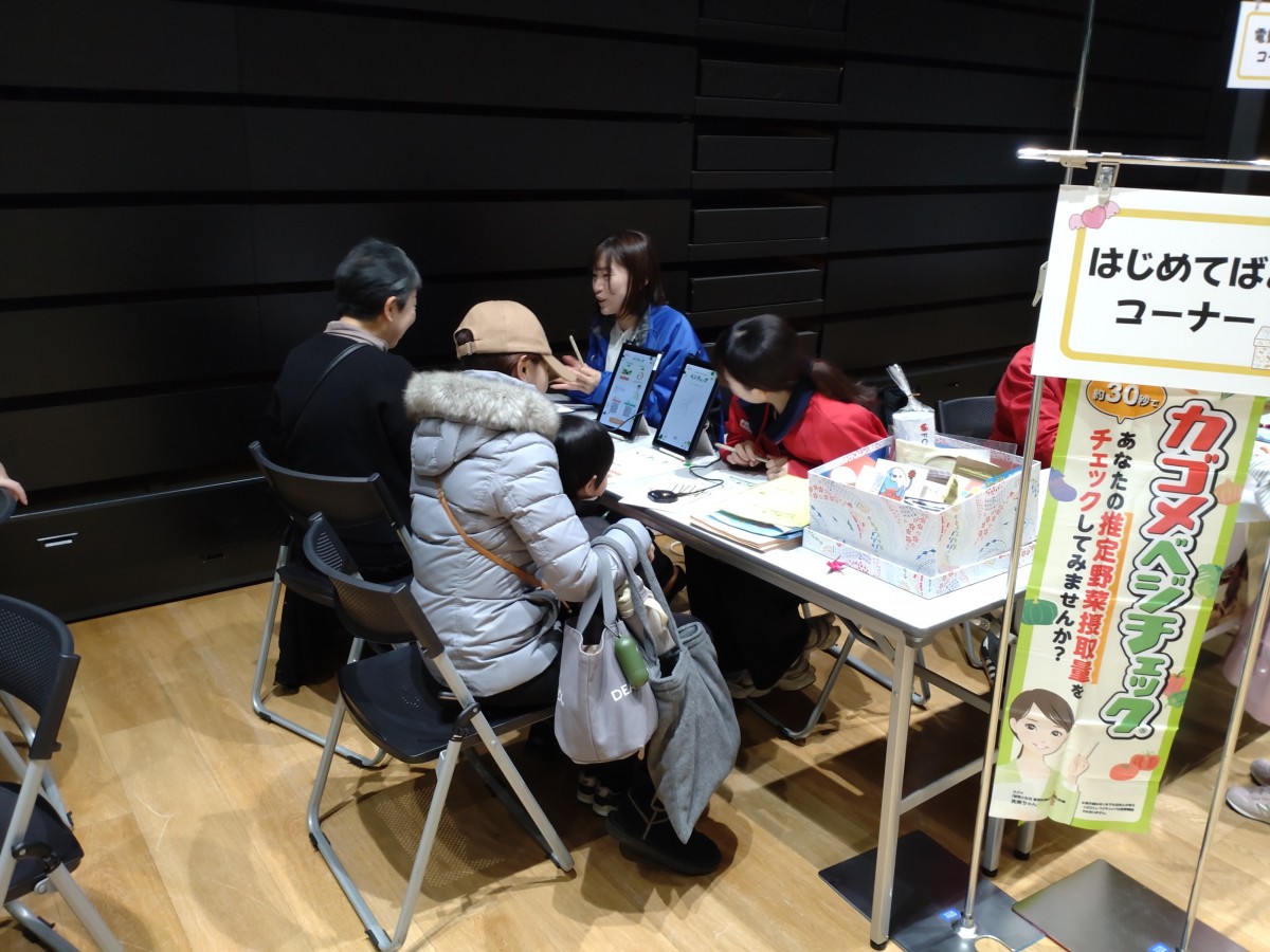 また、福祉コーナーでは電動カートの展示や、推定摂取野菜量が測定できる「ベジチェック」体験を実施しました。参加者からは「電動カートを実際に見てみたかった」「どれくらい野菜が取れているかわかって良かった」などの声が寄せられ、福祉や健康への関心を深めていただく機会となりました。