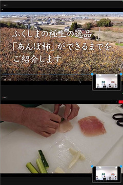 そして、福島県北地方の特産品で冬の風物詩ともいわれ、原発事故により一時は加工が自粛されていた「あんぽ柿」の復興(生産再開)の様子の動画、エフコープとも友好協力協定を締結していただいている、JAふくしま未来様の女性部メンバーによる約5分間の「かあちゃん直伝クッキング」のVTRをご紹介。そしてJAふくしま未来様から、「あんぽ柿」の特徴や説明などをお話して頂きました。